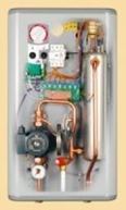 В комплектацию котла входит комнатный регулятор температуры, циркуляционный насос, группа безопасности и манометр.